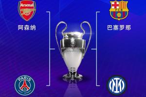 体育资讯04月17日讯 本赛季欧冠半决赛对阵出炉,阿森纳vs巴黎,巴萨vs国米。